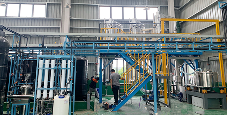 張家港某公司金屬清洗廢水使用現(xiàn)場,蒸發(fā)量每小時200kg,雙效蒸發(fā)器,配備電加熱蒸汽發(fā)生器